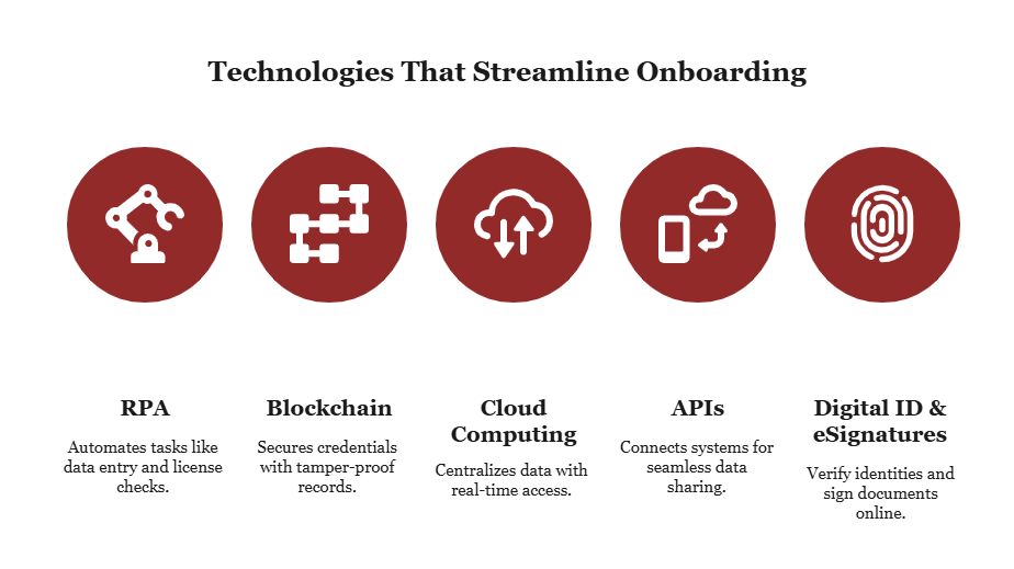 Technology plays a critical role in streamlining the complex provider onboarding process. Advanced technologies like AI and Blockchain are moving beyond simple workflow automation and actively transforming provider onboarding. Here are the tech solutions that streamline the process: